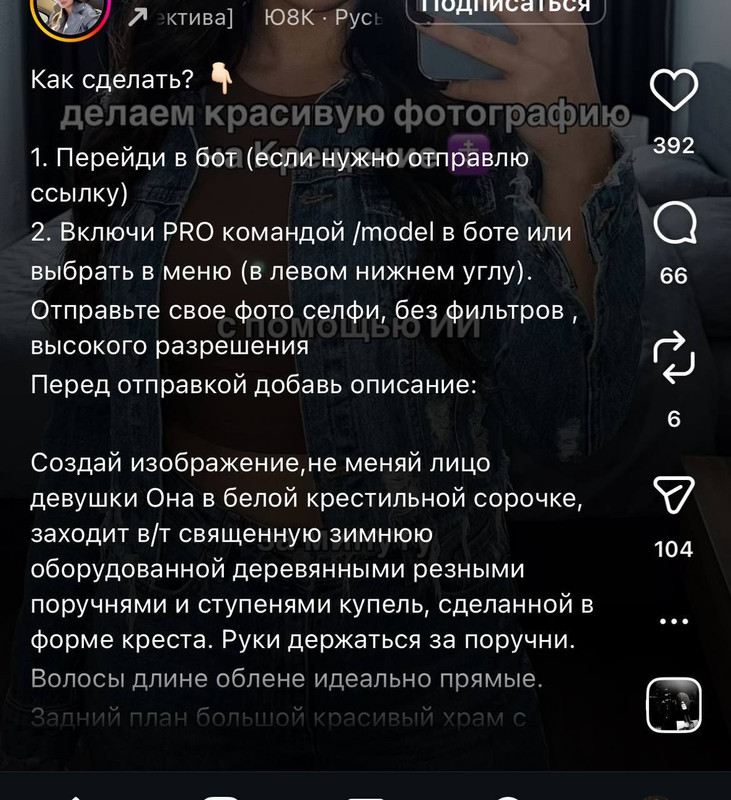 Искусственный интеллект на помощь естественному Posted by: tolya99А что, так можно было? Родные, оказывается, чтобы окунуться в иордань, теперь не надо ни молиться, ни каяться, ни даже выходить из дома. Загрузил фото, скопировал промт, и вот ты уже с красивой картинкой. Только вот вера не про картинки. И народная традиция не про тренды. Это состояние души, искреннее стремление к Богу, настоящая работа над собой, а не понты для лайков. https://t.me/sorok40russia/80973?single   comments |