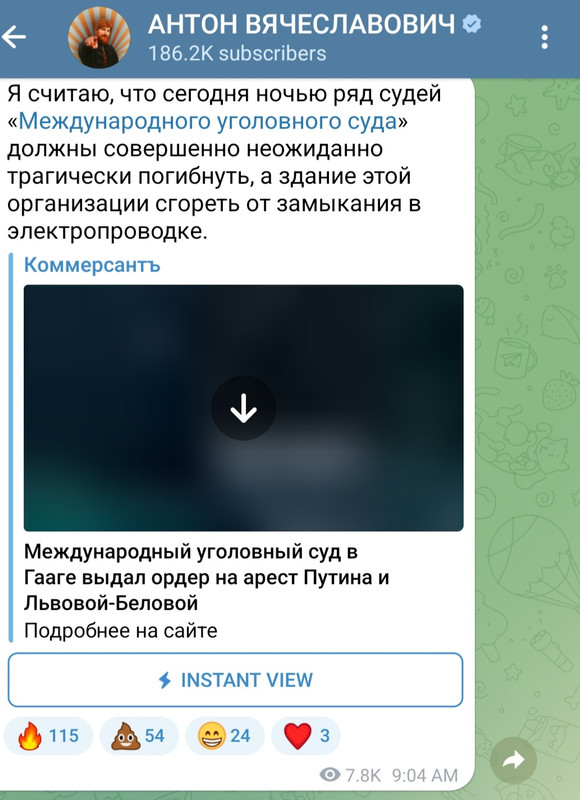 Месть за ордер на арест Путина. Асимметричная как висячий хер. Posted by: akim_trefilowВ два московских бара пришла полиция. Заведения подозревали в финансирование ВСУ Как пишут "Медиазона", правозащитный проект "ОВД-Инфо" и издание SOTA, сегодня вечером полиция пришла в два московских бара - Underdog и La Virgen Taqueria. Причиной визита стало то, что заведения в какой-то форме якобы финансировали украинскую армию. Посетители и сотрудники баров на условиях анонимности рассказали, что у полицейских были кувалды и электрошокеры. Они применяли силу. Одну из посетительниц заставили написать на двери бара "Z - за Россию". На одном из опубликованных видео видно, что пятеро молодых людей хором поют песню группы "Любэ" "Березы". Один из силовиков говорил: "Вытягиваем, вытягиваем!". Второй оставшийся за кадром возмущался, что поет громче, чем люди в кадре. "ОВД-Инфо" говорит, что полиция задержала 40-50 человек. Их допрашивали, в том числе, сотрудники ФСБ, большинство уже отпустили - после опросов, проверки татуировок и того, на какие каналы они подписаны в "Телеграме". Оба заведения в своих соцсетях написали, что временно не работают и не будут работать в субботу. Официально ГУ МВД по Москве визит в бары не комментировало. Источник ТАСС в силовых структурах говорит, что полиция пришла из-за "подозрений в причастности заведений к финансированию Вооруженных сил Украины".   comments | 10:21p |