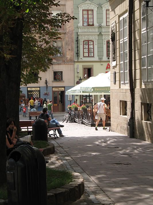 вчера ...все меняется, все передвигается :-) вот какая теперь рыба около кафе *под клепсидрой*... а была такая: http://public.fotki.com/tempika/lviv/dzyga.html...и рыба была бронзовая, и стулья - аутентичные... правда, стулья не ушли совсем, они передвинулись в закрытую часть кафе....еще сходили мы в *Крыивку* и просто погуляли по Рынку... ----------------------------------------------------------------