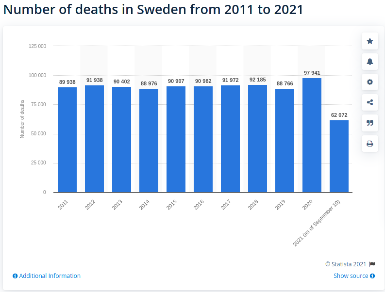 Напоминаю, что в самой Швеции провели дополнительное сплошное обследование по одному из регионов и выявили, что в 70% случаев смертей от ковида «covid-19 был скорее сопутствующим фактором, чем прямой причиной».