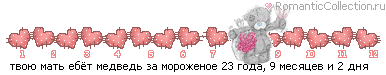 НОВОЕ СЛОВО В КОММЕНТАТОРСКОМ ДЕЛЕ придумал новый охуенный фетиш. кидать в камменты эти злоебучие линеечки из серии: "моей розовой кисе уже 2 года и 6 месяцев". тема, поистине, неисчерпаема. например: ![]() ... ![]() ![]() ![]() разжиться таким милым чудом можно, кликнув по любой из вышеприведённых линеек. сосите ноги, холуи. я принёс вам свет знания!