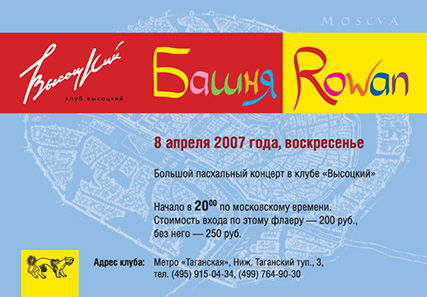 А вот и про нас  В славном городе Москве в Светлое Христово Воскресенье 8 апреля мы будем играть большой концерт. По этому поводу уже заранее красим яйца, шьем парадные камзолы, репетируем, меняем шила на мыла, аранжировки на оранжереи и наоборот, вообще в оживленном возбуждении. Блин, просто не то перед боем, не то перед балом, лучше не путать. Сделаем на сейшен несколько песен, каких в Москве еще не играли, а одну так и вообще никогда и нигде. На самом деле, это будет довольно занятно. Чисто по личным раскладам. Каково это - играть, когда тебя по жизни радует настолько, что удержу нет. А после Всенощной особенно крепко возносит, это уже проверено, только концерты еще ни разу так не выпадали. Вот, выпало, ура Ему. Если честно, будоражит немного, потому что реально же получается марафон. Через Страстную неделю - к самому лучшему дню. Раньше после выстаивания просто падала. Но... Тонко намекаю: айда к нам, праздник же! А уж мы постараемся. Ради праздника-то ) Рекламу распространять как можно шире, приходите все и чтоб никто не ушел, на флаере специально текст для караоке, обещаем яичной скорлупой не швыряццо, ну не слишком швыряццо. Не стесняемся, непринужденно веселимся, пьем пиво (МОЖНО!!!) и разгавливаемся (или разговливаемся?). И целуемся! И следите, добрые люди, чтоб никто с концерта не ушел обиженным и непоцелованным. Но теперь мы уже немножко другие, теперь уже выдюжим, надеюсь. Потому что так пошла эволюция. А еще - ссылка на пост с записями концерта в "Манхэттене", там тоже всякое было. http://community.livejournal.com/rowan_tower/113615.htmlЭто я к тому, что "Башня" теперь такая. И дальше будет только такее. ... ( Развернуть весь текст ) |