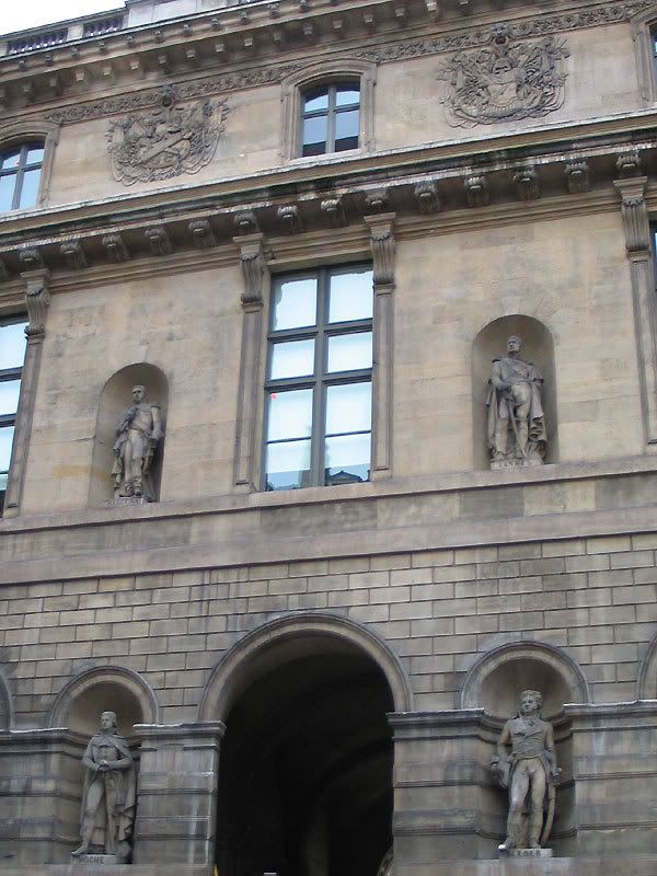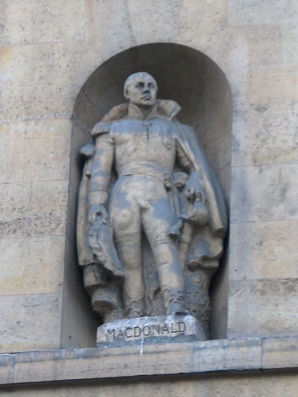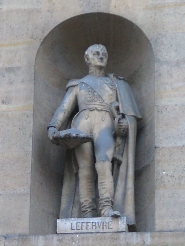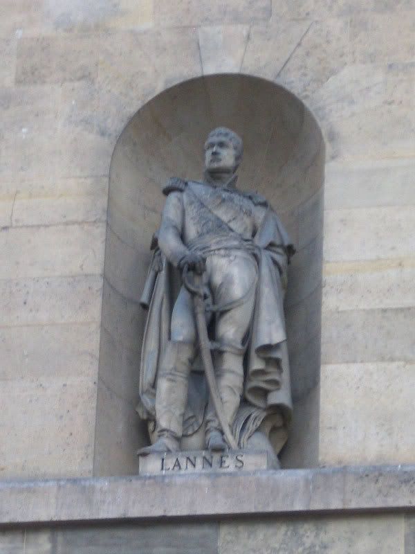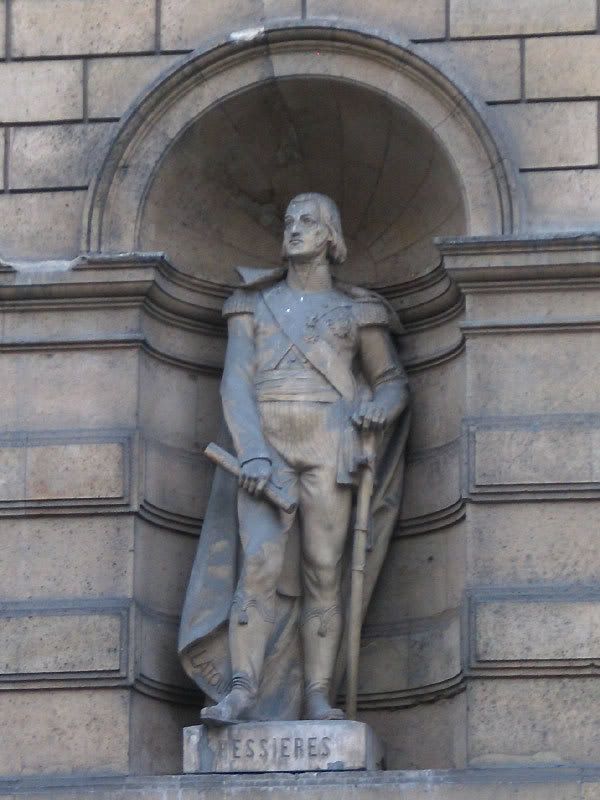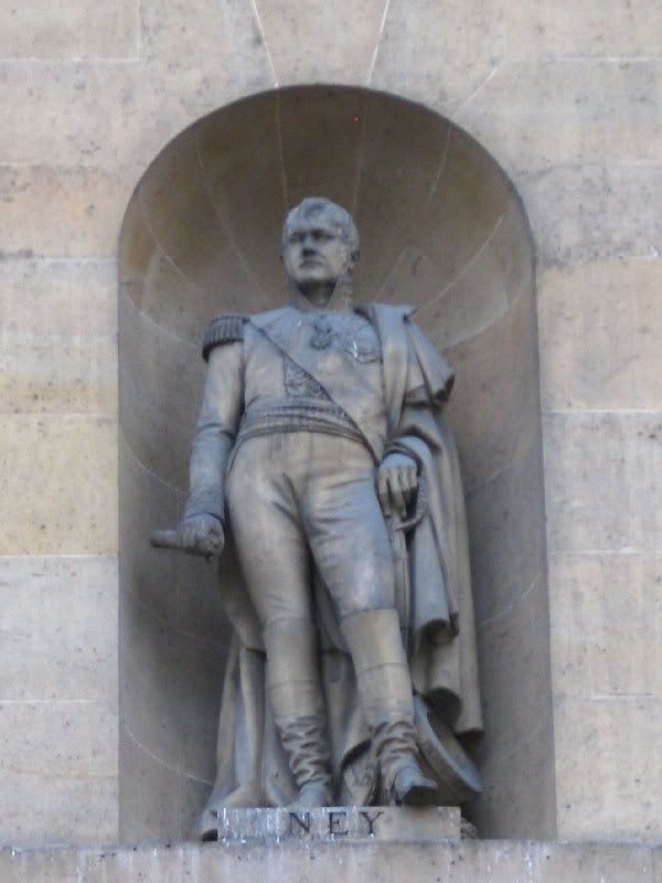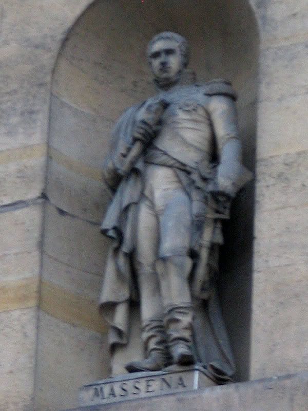Статуи генералов и маршалов на стене Лувра на ул. Риволи Одна из моих идей-фикс этого визита в Париж состояла в том, что бы заснять все статуи генералов и маршалов, стоящие в нишах на стене Лувра, выходящей на ул. Риволи. Из 32 статуй, 28 относятся к прославленным генералам времен Великой французской революции и наполеоновским войнам. К слову сказать, я так нигде и не нашла точной даты появления статуй на стене Лувра, но, вероятно, это 1810 г. Четыре статуи (самые крайние с правой стороны) были установлены уже значительно позже. Вот так выглядит часть стены Лувра со стороны улицы Риволи. ![]() ... ![]() ![]() А вот и сами статуи. Я разместила их в том же порядке (слева направо), в котором они и стоят. Кратки биографические данные, слепленные на скорую руку. Скорее всего позднее я эту часть текста доработаю. Массена Андре. Родился 6 мая 1758 в Ницце. Произведен в маршалы 19 мая 1804 г. Герцог Риволийский с 24 апреля 1808 г. Князь Эсслингский с 31 января 1810 г. Умер 4 апреля 1817 г. в Париже. Биография Ланн Жан. Родился 10 апреля 1769 г. в Лектуре (департамент Жер). Произведен в маршалы 19 мая 1804 г. Герцог Монтебелло с 15 июня 1808 г. Смертельно ранен в битве при Эсслинге 22 мая 1809 г., умер в Кайзер-Эберсдорфе (Австрия) 31 мая 1809 г. Биография Сульт Жан-де-Дьё. Родился 29 марта 1869 г. в Сент-Аман-Лабастид (департамент Тарн). Произведен в маршалы 19 мая 1804 г. Герцог Далматский с 28 июня 1808 г. Умер 26 ноября 1851 г. в Сент-Аман-Лабастид (департамент Тарн). Биография Ней Мишель. Родился 10 января 1769 г. в Саррлуи (департамент Мозель). Произведен в маршалы 19 мая 1804 г. Герцог Эльхингенский с 6 июня 1808 г. Князь Москворецкий с 25 марта 1813 г. Расстрелян в Париже 7 декабря 1815 г. Биография Келлерман Франсуа-Этьен-Кристоф. Родился 28 мая 1735 г. в Страсбурге. Произведен в маршалы 19 мая 1804 г. Герцог Бальми с 3 июня 1808 г. Умер 13 сентября 1820 г. в Париже. Биография Биография Лефевр Франсуа-Жозеф. Родился 25 октября 1755 г. в Руффахе (департамент Верхний Рейн). Произведен в маршалы 19 мая 1804 г. Герцог Данцигский с 10 сентября 1808 г. Умер 14 сентября 1820 г. в Париже. Биография Жубер Бартелеми Дивизионный генерал. Родился в 1769 г. Убит в сражении при Нови 15 августа 1799 г. Жюно Андош. Генерал-полковник гусар. Дивизионный генерал. Родился 25 сентября 1771 г. в Бюсси-ле-Гран (Бургундия). Понкончил с собой в припадке безумия, выбросившись из окна дома в Монбаре (департамент Кот-д'Ор) 29 июля 1813 г. Биография Эбле Жан-Батист. Дивизионный генерал. Барон Империи. Родился 21 декабря 1758 г. в Сен-Жак де Рорбак (Лотарингия). Умер во время отступления Великой Армии из России 31 декабря 1812 г. в г.Кенигсберг (Пруссия). Биография Макдональд Этьен-Жак-Жозеф-Александр. Родился 17 ноября 1765 г. в Седане. Произведен в маршалы 12 июля 1809 г. Герцог Тарентский с 9 декабря 1809 г. Умер 25 сентября 1840 г. в Курселе (департамент Луаре). Биография Удино Нико ля-Шарль. Родился 25 апреля 1767 г. в Бар-ле-Дюк (департамент Маас). Произведен в маршалы 12 июля 1809 г. Герцог Реджио с 14 октября 1810 г. Умер 17 сентября 1847 в Париже. Биография Друо Антуан. Пэр Франции. Барон Империи. Дивизионный генерал. Адьютант Императора. Главнокомандующий гвардецской артиллерией. Родился 11 января 1774 г. в Нанси (Лотарингия). Умер 24 марта 1847 в Нанси. Биография Лассаль Антуан-Шарль-Луи, граф де. Дивизионный генерал. Родился в Меце, 10 мая 1775 г. Убит в сражении при Ваграме (Австрия), 6 июля 1809 г. Биография Бужо Томас Робер. Маркиз де Ля Пиконньери, герцог д'Исли