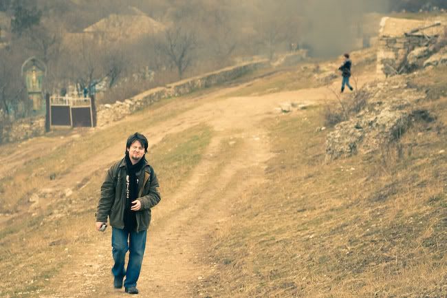 Бутучены Вчера, в обед пришла в голову идея сгонять просто так в Старый Оргеев, погулять, развеяться, пофоткать. В общем, убить субботу. ... Нечаянно разбудил звонком serji_o@lj (ага, и это в час дня), затем serji_o@lj разбудил звонком rogix@lj'а (ага, это уже пол-второго). Уже через час мы втроем ехали в сторону Оргеева, смотрели на черные тучи, на дождь, и думали - что мы будет делать там в такую погоду? Пока мы думали, я умудрился съехать с трассы не в том месте. Но вовремя глянул на карту. К счастью, на месте не было ни облачка, и, тем более, дождя. Зато был сильный порывистый ветер. С последнего моего посещения Бутучен (12 лет назад) многое поменялось. Нормальная дорога до самого подножья горы, недействующий скальный монастырь стал действующим, и дети, бегающие туда-сюда, просят уже 20 лей на хлеб. Видимо они следят за курсом доллара. Осталось сказать, что нащелкали немало хороших кадров, частью из которых еще поделится serji_o@lj, частью делюсь я rogix@lj'у явно не нравится ветер ) ![]() Вышли мы, значит, на тот самый балкончик в скале... serji_o@lj задумался: "полетать или не полетать - вот в чем вопрос..." ![]() Летать он передумал, поэтому пришлось мне... ![]() Сереже так понравилась решетка на окне, но для полноты композиции ему не хватало чего-то еще... Под руку подвернулась моя голова ![]() Серега со своим длинным объективом даже из-под земли достанет ![]() А вот он развалился на скамейке, и, судя по его довольному выражению лица, он наверное не догадывается, что до него на скамейку ставили свои грязные подошвы все остальные туристы. ![]() rogix@lj в это время снимает всё происходящее. Он не знает, что его тоже снимают. Тут все друг друга снимают. Не снимает только Серега - он снимается ) ![]() К тому моменту ветер поднялся не на шутку. Капюшоны спасали, но руки мерзли. Вылезать в аську на вершине горы в Старом Оргееве - мое любимое занятие ![]() "Толик, посмотри какой классный зум на камере у Rogix'а!" Фотка называется: "У меня gprs не коннектится, руки замерзли, но ладно, дайте посмотрю" ![]() Репортаж закончен. Следите за развитием событий. UPD rogix@lj тоже отписал о прошедшей поездке. Ждем serji_o@lj )