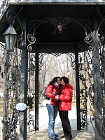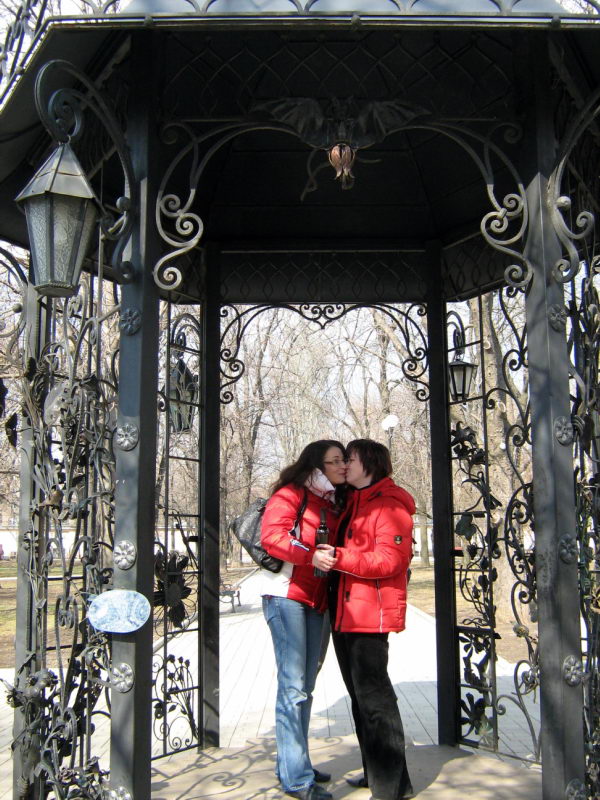 Выкатившись на улицу, мы немедленно стали играть в туристов *ну сфотографируй меня хотя бы вот здесь, у кассы*. По ссылке внизу вашему вниманию представлены 3 (три!!!) страницы фотографий из серий "Мы открываем и пьём Хванчкару", "Мы жрём молодильные яблочки", "Мы со знаками зодиака", "Мы и пауки", "Принцесса Ксюндель на троне", "Мы вот на этой лавочке", "И ещё на этой", "Мы вот в этом кабаке" и многие другие.
