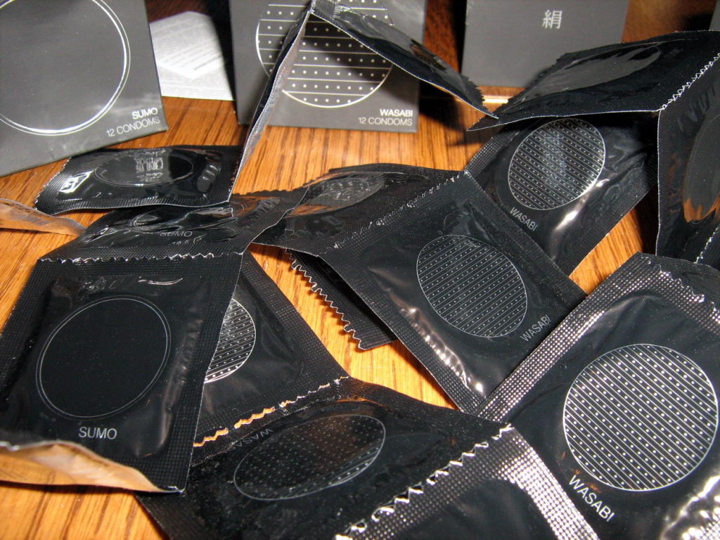 После очередного обеда стало ясно, что обжоство до добра не доводит, и мы направились в аптеку. Окинув взглядом витрину с презервативами, я немедленно привлекла к ней внимание всех посетителей данного заведения криком "Я люблю украинских дизайнеров!!!". На витрине лежало удивительное в строгих классических чёрных коробочках кубической формы. Презервативы "Сакура", "Хокку", "Сумо" и наиболее поразившие меня "Васаби". Немедленно истратив остатки наличности на две коробки "Сумо" и "Васаби" мы с удивлением выяснили, что производитель данного продукта - Япония, а импортёр - московское ООО. Таким образом, к украинским дизайнерам данный продукт имеет меньше всего отношения. Но зато они у нас есть. Чёрные и стильные. С удивительными названиями, пробуждающими воображение.