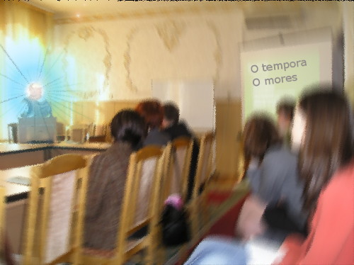 Трэш-арт по мотивам одной из сегодняшних защит (филология). Называется так: “Хтонический хаос рвётся в наш мир с кафедры, и учёный совет не в силах его остановить. Фильтры на пути энтропии засорились”. Не понимаю я (то есть, понимаю, но принять не могу), как можно сначала перечислить штук десять концептуальных, сущностных ошибок в диссертации, а потом сказать “все вышеперечисленные замечания не влияют на общую положительную оценку работы”. Да ипать-колотить, как это “не влияют”?! Удручён. Предлагаю в дальнейшем все защиты диссертаций проводить обязательно под Current 93 в качестве фоновой музыки. Чёрные половники съели небо.