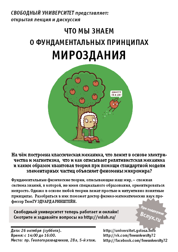11:34 pm - Основы физических теорий в Свободном университете 26 октября в тюменском свободном университете - лекция профессора Эдуарда Аринштейна « Что мы знаем о фундаментальных принципах мироздания».