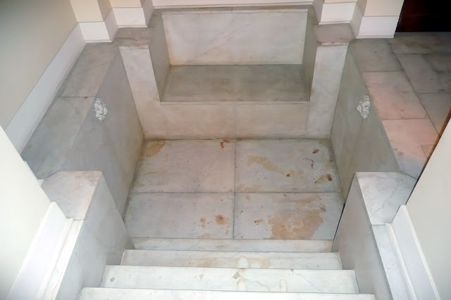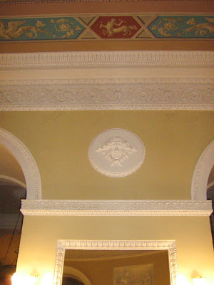Из ванной в свою очередь можно пройти в подвал, где находятся комната с мраморным бассейном, напоминающим римские термы. В ней мраморный камин с маской Диониса ![]() Подвальный ход уводит вдаль, кажется в ту самую Столовую, ставшую последним пристанищем Григория Распутина… Но, это уже совсем другая история ![]() «Ну и нафантазировали же вы здесь, батенька…» Это слова А.Н.Бенуа, посетившего интерьеры молодых Юсуповых. Действительно, тут было реализовано множество «причуд», соответствовавших характеру князя. Одной из них была необычная комната – зеркальный восьмигранник. Четыре двери с зеркалами были ложными, четыре других вели в разные помещения, в том числе, в подвальную Столовую. Когда двери были закрыты, комната казалась не имеющей выхода. Бенуа закончил свою фразу пророческими словами «Вот увидите, что-нибудь да произойдет здесь». По возвращении в Россию из свадебного путешествия молодые Юсуповы жили в Петергофе с императрицей Марией Федоровной, затем в Елагином дворце, затем поселились на Мойке в комнатах наверху, где Феликс жил когда то с братом Николаем. 21 марта 1915 года у них родилась дочь Ирина. Потом была ночь на 17 (30) декабря 1916г., события которой развернулись среди описываемых интерьеров, допросы, ссылка в усадьбу Ракитное. Юсуповы ненадолго вернулись во дворец на Мойке после Февральской революции. Работы по отделке их покоев «постепенно приостановились из-за уже открытых демонстраций, стычек с полицией. с войсками». Вскоре они навсегда покинули свой дом и свою страну.