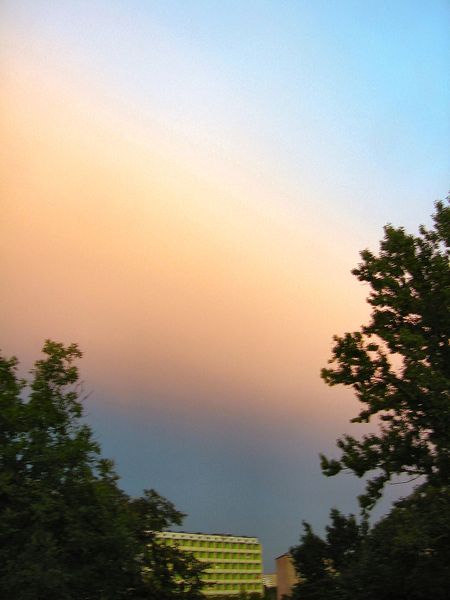 Весь день ливень, а вечером вдруг выглянуло довольно яркое солнце. Похоже, облака были по вертикали в несколько слоев. Вот и вышло то, что вышло.