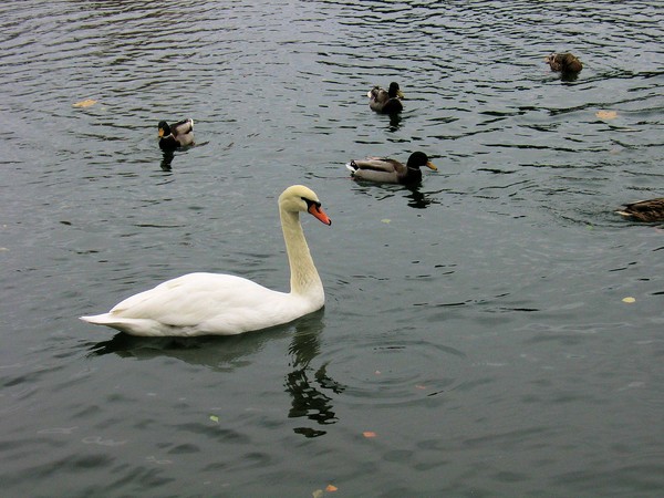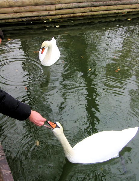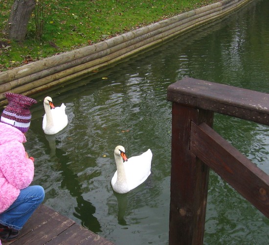 Если уж озеро, то пусть лебединое Я стоял на мостках, нависающих над прудом Ботанического сада и любовался белоснежными птицами. ![]() Одна из них обратила на меня внимание... но хлеба я взять не догадался: ![]() Подбежала девочка и протянула руку. Птицы дружно сделали "равнение налево": ![]() Подошел папа, достал краюху, отщипнул кусочек, предложил лебедю. Тот выхватил приношение, заодно чувствительно ущипнув мужчину за палец. Мужчина явно очень хотел выразиться, но при ребенке сдержался: ![]() Следующие порции бросали уже в воду. Лебеди не возражали: ![]() А потом смотрели на круги, образуемые брошенными кусочками - иначе такое бросание было бы пустой забавой: ![]() А утки терпеливо ждали, пока насытятся хозяева водоёма, дабы потом урвать и свою долю: ![]() P.S. Название поста - из шуточки, когда-то популярной в консерваторских кругах. |