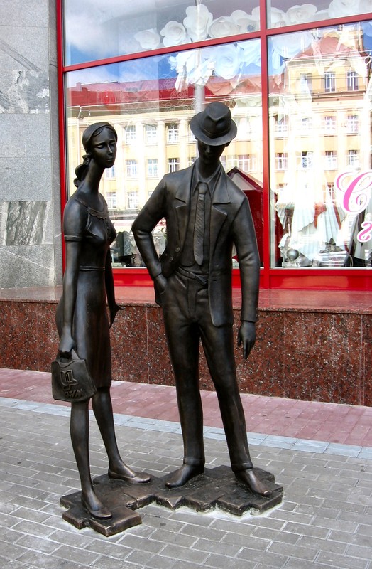 А у нас в Харькове уже почти всех персонажений Ильфа и Петрова экранизировали оскульптурили. И еще - традиционно романтические скульптуры: скрипач на крыше, влюбленные.