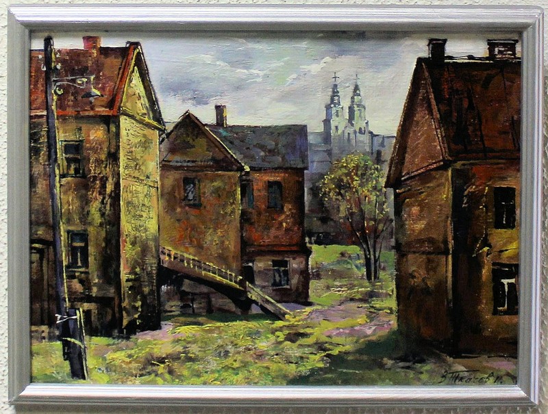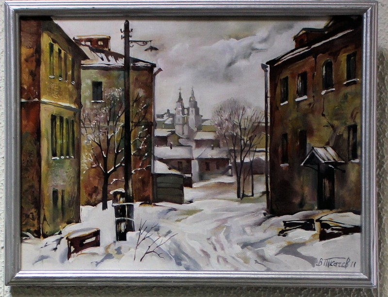 Картинки с выставки, которая заканчивает свою работу в Музее истории города на Революционной. Вот официальная информация о художнике: Ткачев Владимир Викторович Родился в 1947 году в д. Низок Минской области. В 1967 году окончил Минское художественное училище, в 1974 - Белорусский театрально-художественный институт. Учился у Л. Лапчинского, Г. Ващенко, М. Данцига. Работает в декоративно-прикладном и монументальном искусстве, станковой живописи. Наиболее известные произведения: гобелены "Музыка" в Белорусской государственной филармонии, "Беларусь - край родной" в резиденции Совета Министров Беларуси, "Беларусь" для посольства бывшего СССР в Вашингтоне, витражи "Песни Беларуси" и "Времена года" в Белорусском театре юного зрителя. Член Белорусского союза художников с 1978 г. Произведения находятся в Национальном художественном музее Республики Беларусь, фондах Белорусского союза художников, Министерства культуры России, Белорусском государственном музее истории Великой Отечественной войны. На выставке представлена серия живописных работ "Минск. 1970-е гг." Полотна художника - словно окошки, через которые мы видим старый город. Это крыши Троицкого предместья, узкие улочки, глухие стены домов. Минск Ткачева сохраняет дух времени, атмосферу старого города. Художник по-своему задокументировал на полотнах фрагмент истории, уголок Минска 1970-х годов. |