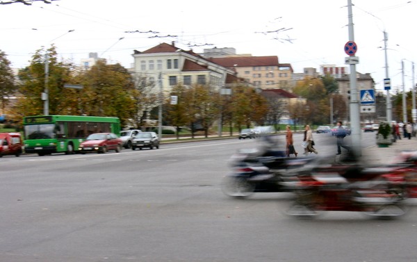 в последнее время байкеры взяли за моду кататься по проспекту Независимости на заднем колесе.