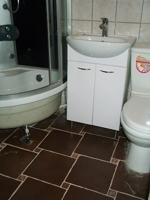 Главная причина задержки - это, разумеется, моя занятость. Мешали и всякие мелочи, самые неприятные из которых - постоянно появлявшаяся течь под поддоном душевой кабины. Сегодня пригласил нашего постоянного помощника, сантехника Николая. Он помог в окончательном монтаже слива под раковиной, а заодно разобрался с течью. Выяснилось, что ее причиной была ненадежная конструкция выпуска воды: накладка-решетка оказалась... пластмассовой с металлическим напылением, а снизу неровная поверхность поддона не выравнивалась слишком плотной резиновой прокладкой. Замаячила уже реальная перспектива демонтажа и полной замены всей системы слива душевой кабины... Но Николай предложил более изящное решение: нанести слой герметика на стыки. Вроде бы, получилось.