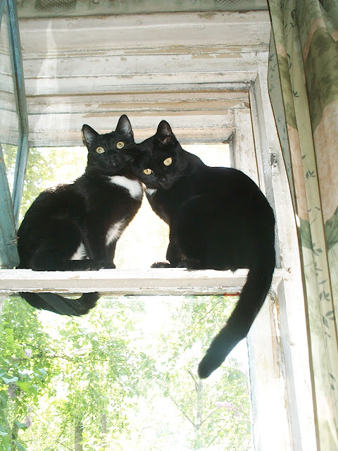 - Чт, 19:27: Мои две чернушки спят на диване, свернувшись калачиками, уткнувшись друг в друга мордочками и обнявшись - один черный клубок. Мило :-)