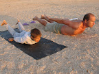 А ще я зранку, на сході сонця йогою займався. Зразу годинку-півтори сам, потім з сином. Одного ранку сфотографувалися на сході сонця разом.