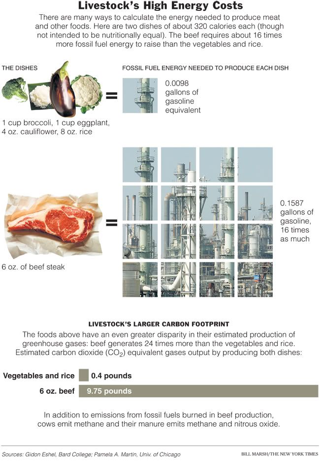 The article talks mostly about energy impact of meat consumption in the US and the rest of the world.