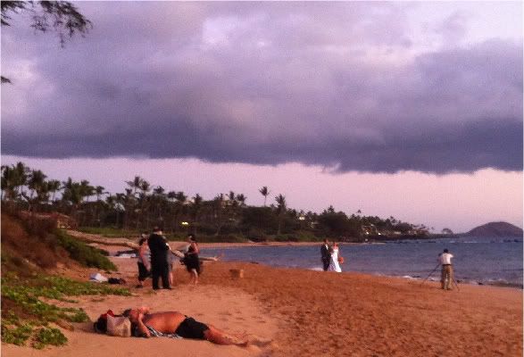 Для тех, кто в урагане: погода на острове Мауи, как обычно, хорошая. Кто-то загорает, кто-то женится.