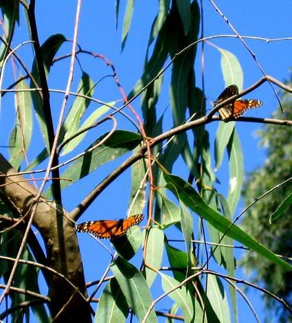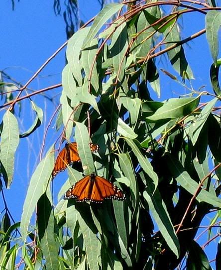 ( f-f ) Monarch butterflies in a eucalyptus grove. Santa Cruz, California.