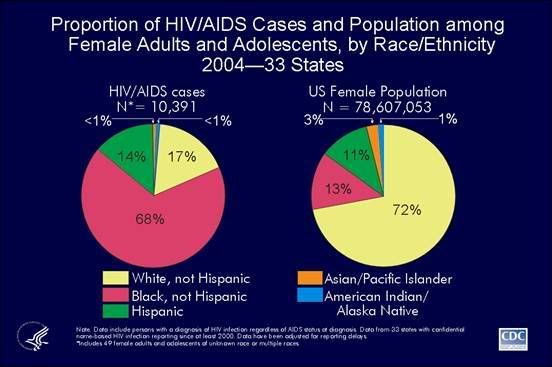 Black women in 2002 accounted for 67 percent of the country's AIDS cases among women. For the sake of comparison, consider that blacks had a rate of 48 cases per 100,000 blacks, while whites had a rate of 2 per 100,000 whites. http://www.slate.com/id/2108724/