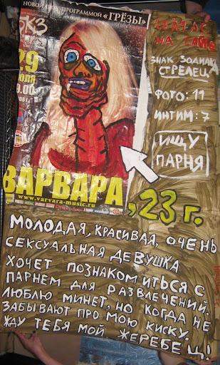 Серия "Несерьезные знакомства" - "Варвара, 23 г.", 140Х95, афиша, бумага, акрил, текст с доски объявлений в интернете