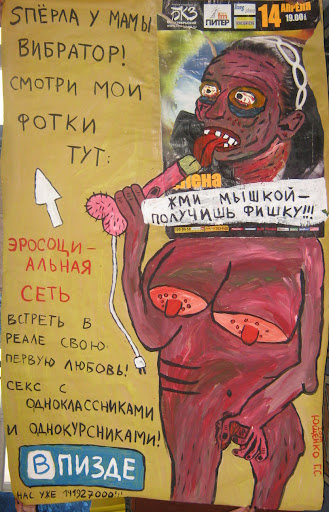 Серия "Несерьезные знакомства" - "Эросоциальная сеть", 172Х112, афиша, бумага, акрил, текст с доски объявлений в интернете