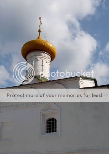 Боголюбский женский монастырь. Огромный, тяжеловесный собор (чем-то очень отдалённо напоминающий Троицкий в Питере. М.б. синими куполами?) распластывает тебя, вдавливает в землю своей массой, такая же мощная колокольня…