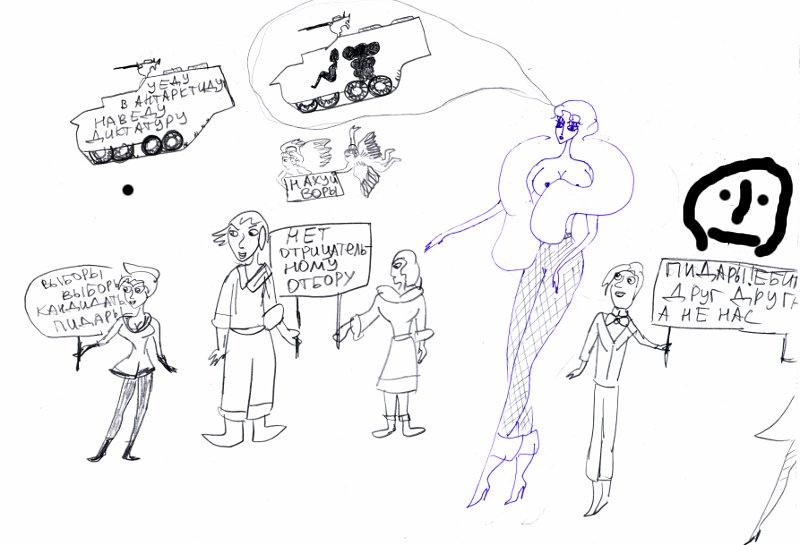 Вскоре после этого я ушла, и проходила мимо действительно пестрейшего набора плакатов, "Долой власть жуликов, воров и гомофобов", "СВОБОДА, РАВЕНСТВО, ФЕМИНИЗМ" -- что-то в этом роде. Я тоже так считаю: круче феминизма только свобода. Впрочем, это все равно.
