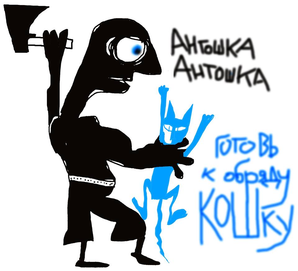 ("Антон Ла Вей готовит к обряду кошку", у кого ссылка не открывается; орфография авторская) |