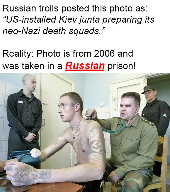 . Об этом нужно рассказывать тем, кто хочет проверять достоверность сообщений. Тем, кто их стряпает рассказывать бесполезно. Значит так, идешь в поисковик Google https://www.google.ca/imghp?hl=en&tab=wi&ei=RIiPU8GkH42oyAT74ILIBA&ved=0CAQQqi4oAgКликаешь на иконке с фотоаппаратом, даешь ссылку на имеющуюся картинку и смотришь, где она была употреблена раньше. Грубые фальшивки можно выявить сразу. Или другой способ. Не ведешься и ждешь, когда кто-то покажет, что предъявлена очередная фальшивка (несколько часов - вполне достаточно). Заносишь автора фальшики в свой список манипуляторов.