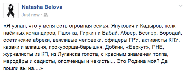 Украинцы не настолько циничны, как я заметила. Ополченцы после сбитого Боинга были в растерянности, в отличие от Козицина, который просто заявил - а нефига тут летать. Любителей халявы столько же (видимо, советская черта), а вот циников, готовых убивать просто так - меньше. Это чисто российкая фишка, воспитанная за последние годы войны на Кавказе и пoстоянных терактов и смертей. Украина же не воевала ни разу за 23 года, когда в России постоянно идет война.