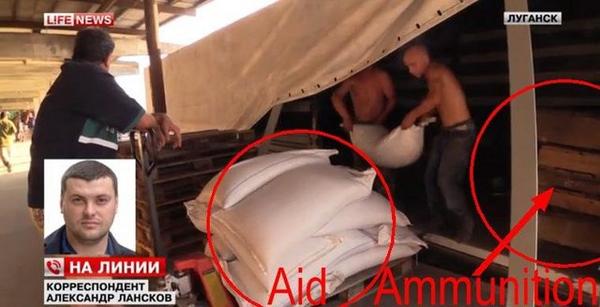 где-то была картинка с лайф-ньюс, там "ополченец" вытаскивает из камаза мешок с мукой, а в глубине явственно видны ящики для боеприпасов