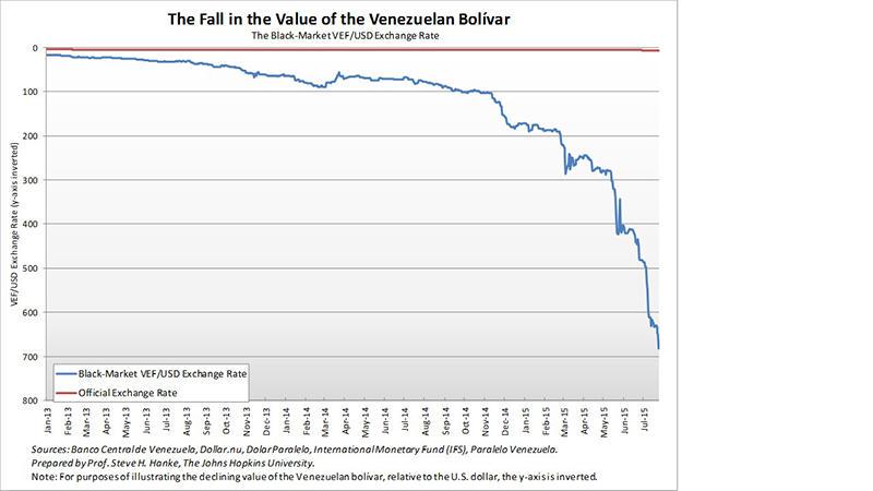 В Венесуэле просто взяли и ввели ввели официальный курс. Красная черта - официальный, синяя - неофициальный