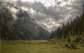 Арча всё-таки заканчивается, и мы вскоре встаём... правильно, на пастбище.